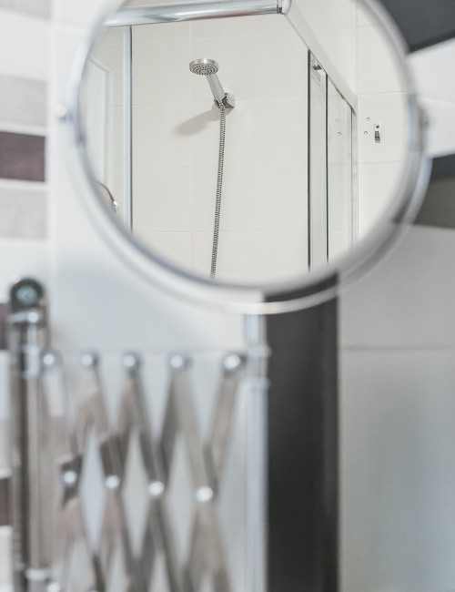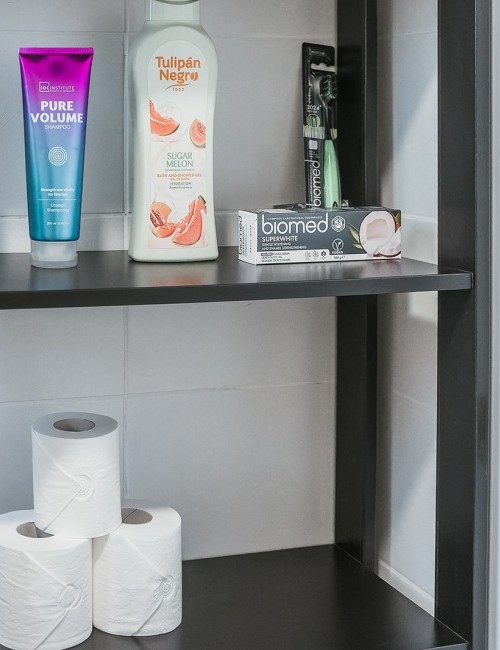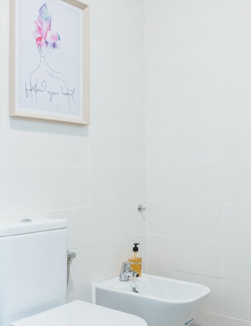 Comparte un baño con ventana al final del pasillo con la habitación A2. El baño cuenta con plato de ducha, bidé, secador de pelo, báscula, productos de aseo y toallas. Ambas habitaciones se encuentran en la entrada de la planta 1, frente al salón.