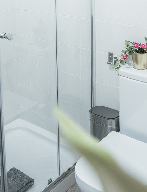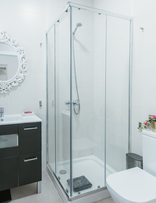 El baño privado tiene ventana, plato de ducha, secador de pelo, báscula, productos de aseo y toallas. Ideal para quienes buscan espacio, comodidad e intimidad.